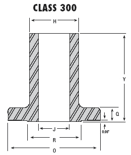 823 | Necks are furnished machined all over. Unless otherwise specified, Class 300 Seamless Long Weld Necks will be furnished drilled and with a 0.06" raised face which is included in thickness "Q" and Length "Y". Long Weld Necks conform to the requirements of the latest API/ASME Code. Other lengths available upon request. |