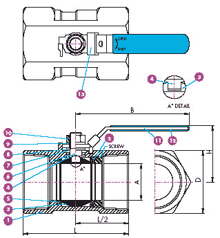 • Pressure rating: 800 PSI WOG (NON-SHOCK) • Steam rating: 125 PSI WSP • Investment cast body • Bottom-loaded, Blow-out-proof stem • Adjustable stem packing • Stainless Steel handle with vinyl grip • Locking device