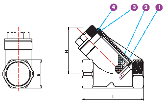 • 300 WOG • Investment cast body & cap • SS316 screen. 4 mm thick perforated, 1.0 mm hole with 2.0 mm staggering • Screwed-in cap • Connecting threads: ANSI B2.1/BS21